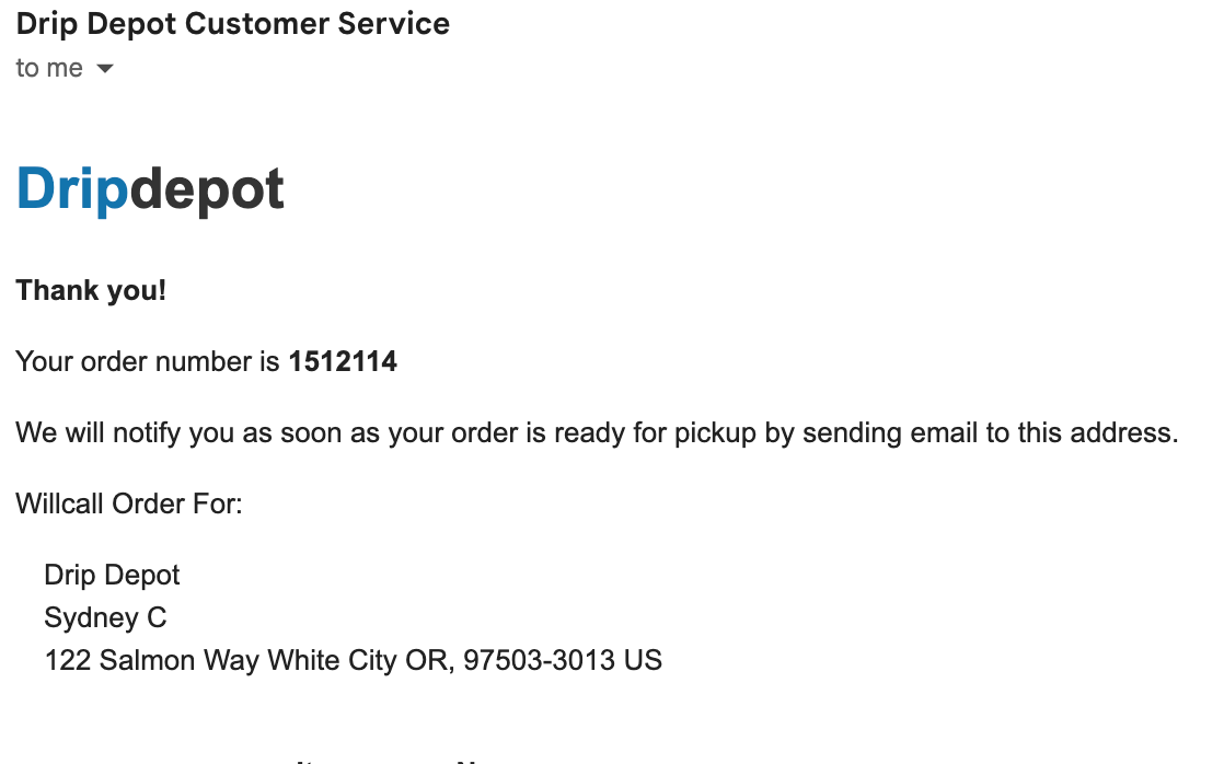 And a confirmation email.