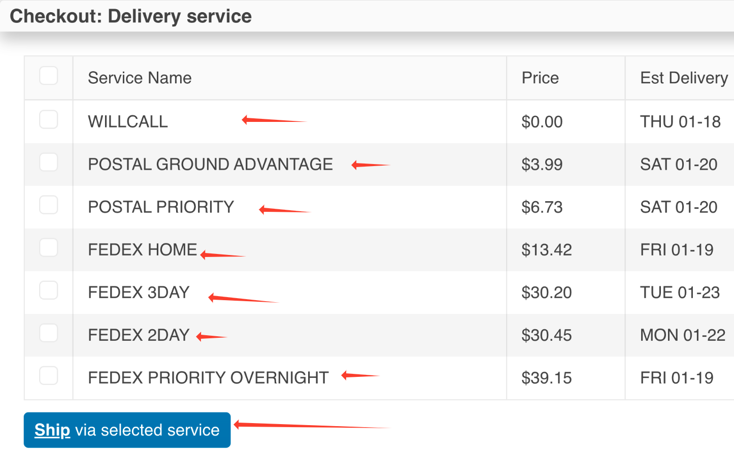The next window will allow you to choose your shipping method. Available options and shipping costs will be displayed based on your shipping address. As always, orders of $49 or more will receive free ground shipping within the contiguous United States.